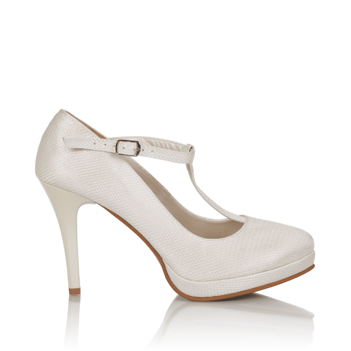 Brautschuhe Modell „Melina ivory High-Heels“ aus Satin und Leder innen. Diese Brautschuhe sind dank Latex-Sohle besonders bequem und gleichzeitig stylisch und hübsch.