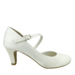 Brautschuhe „Mira Satin Ivory“ aus hochwertigem Satin und 100% Leder innen und an der Sohle mit stylischem Trichterabsatz und bequemer Latex-Sohle.