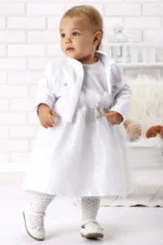 Wunderschönes Set für die Taufe – DK-S102 von Dalary! Bestehend aus Taufkleid und Bolero in den Farben Weiß. Aus Baumwolle mit Tüll.